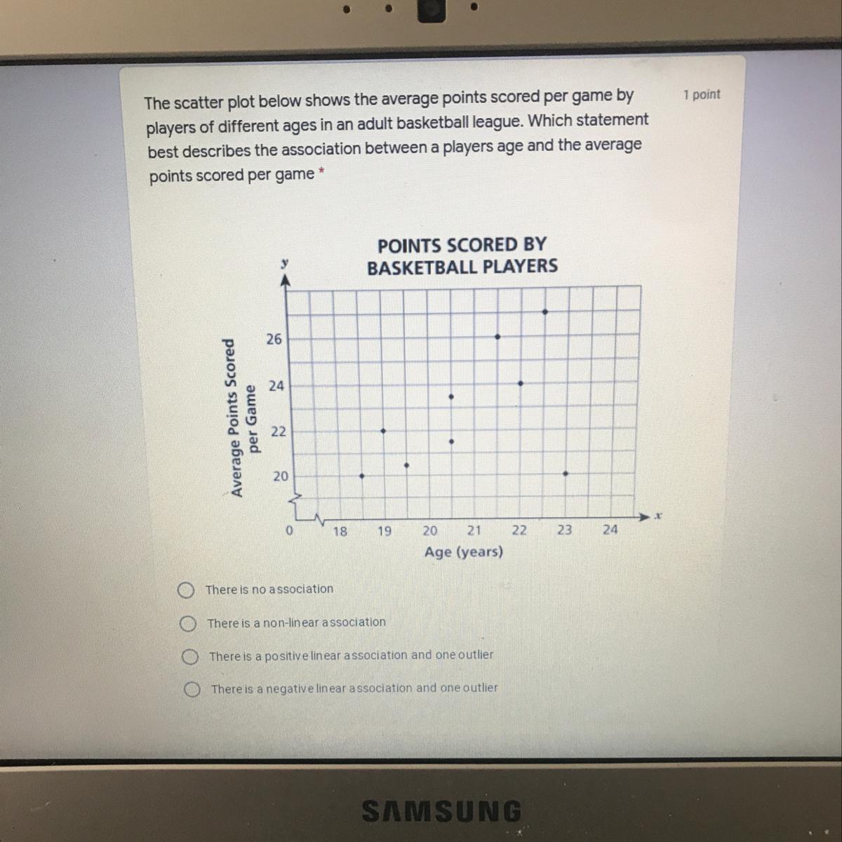 h statement best describes the association between a players age and the average points scored per game