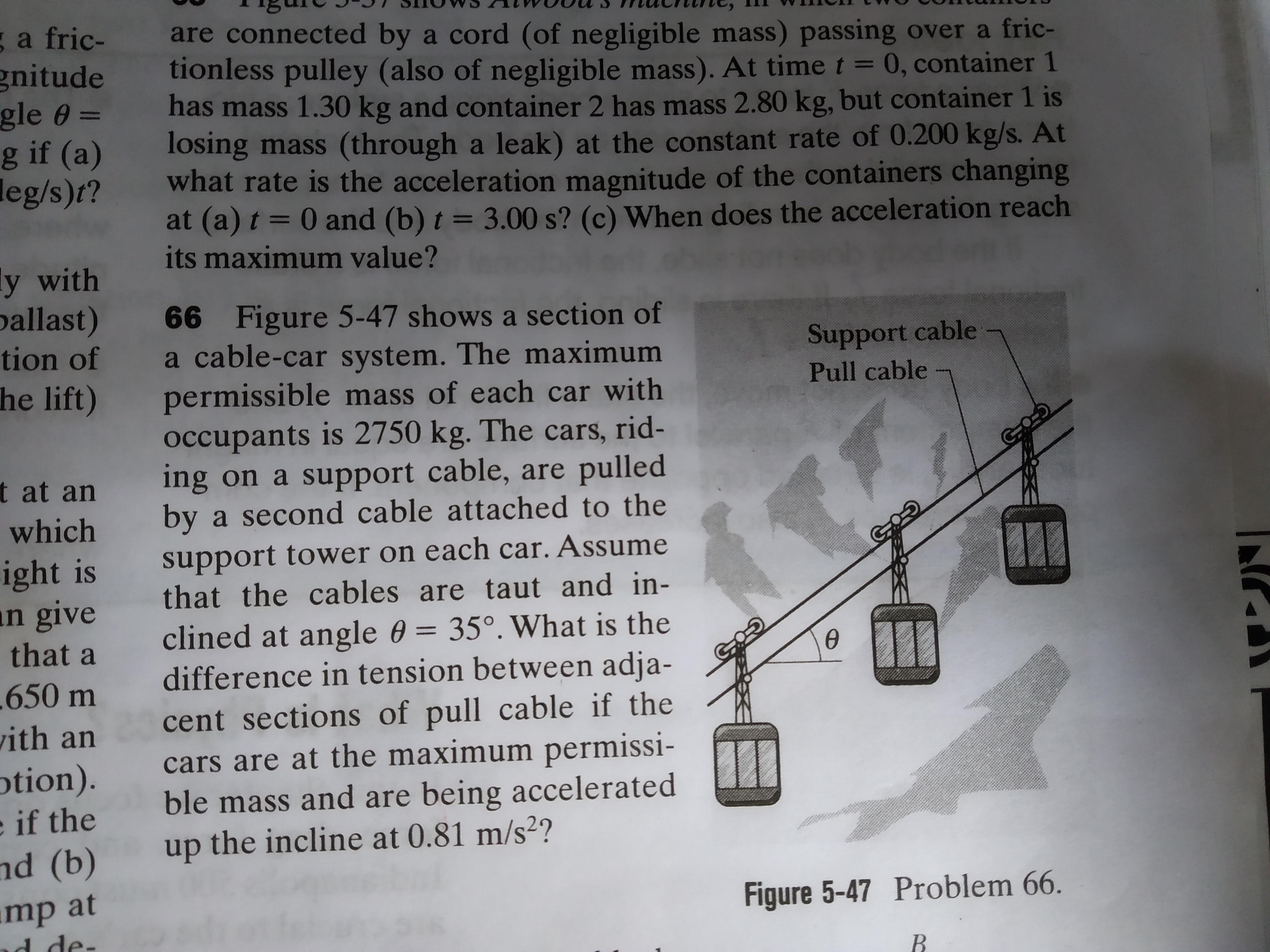 between adjacent sections of the pull cable if the cars are at the maximum permissible mass and are being accelerated up the incline = 17701.16 N or 17.701 kN.
