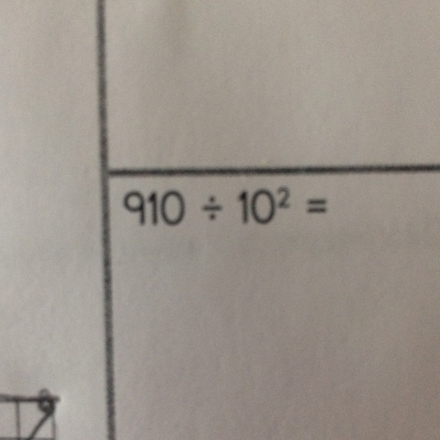 10 to the 2nd power is 100 so that equation is saying 910 divided by 100 equals 9.1