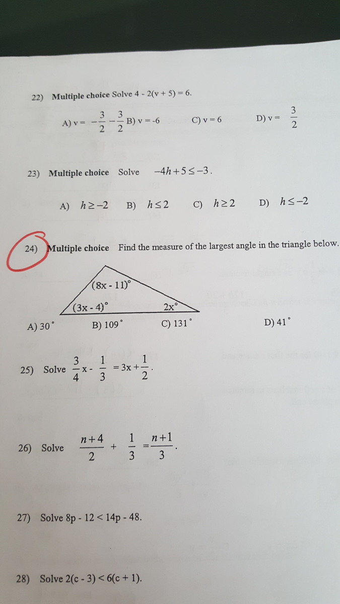 6. As the measure of the largest angle is 109 degrees, the answer is B.