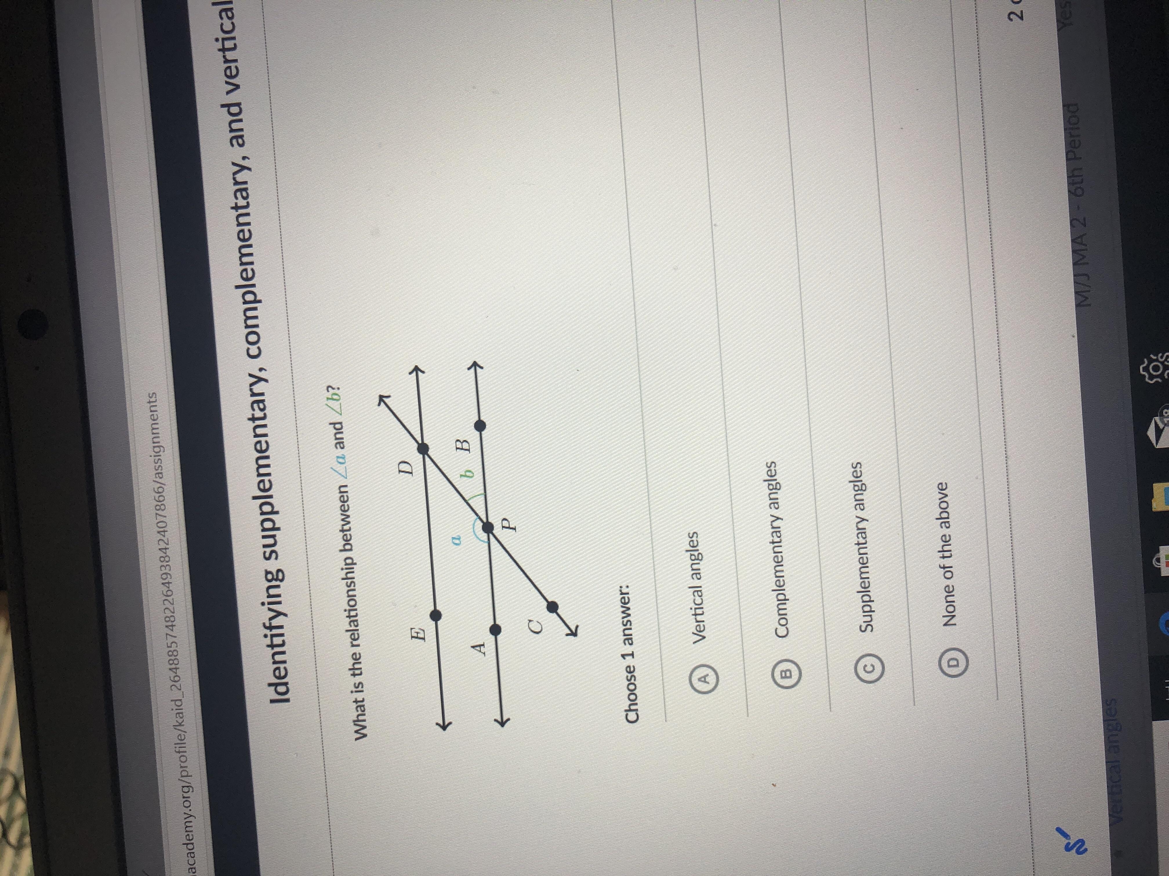 We know this because with the sum of the angles a straight line (180 degree angle) is created.