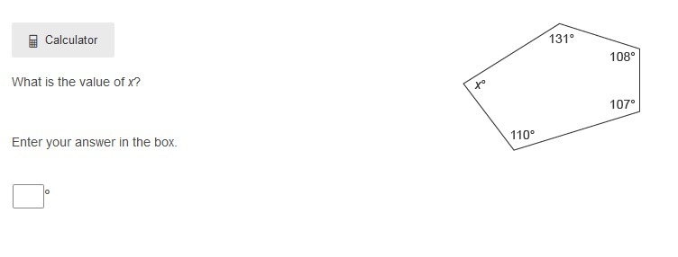 Given angles 131°, 108°, 107°, 110° and x.