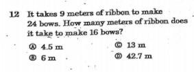 Since it takes 9 metres to make 24 bows, we know that it takes 9 divided by 24 metres to make a bow. That leaves us with the fraction 3/8,