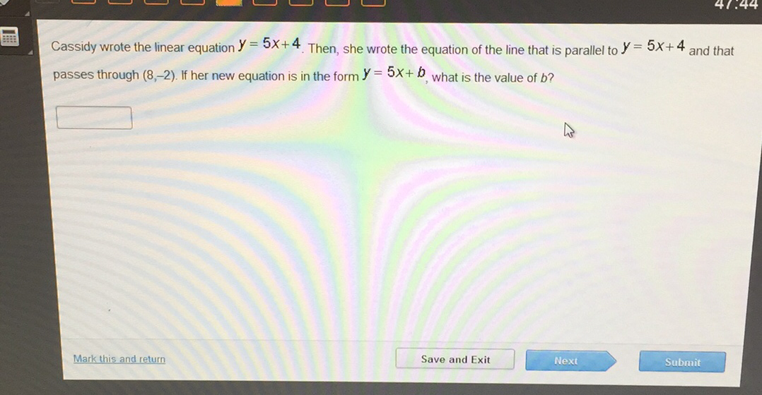 Simplify: </span><span><span><span>4x - </span><span>7 </span></span>= <span><span>5x</span> + 1</span></span><span><span><span>4x</span> − 7</span>= <span><span>5x </span>+ 1</span></span>