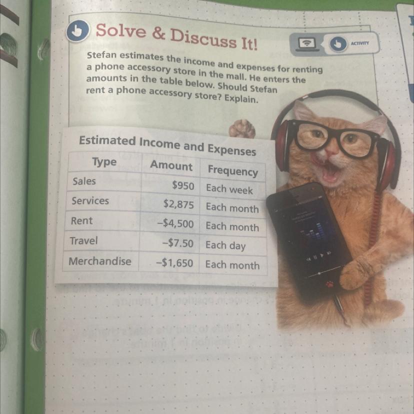 Total estimated income ( > total estimated expenses in a month, therefore, Stefan should rent the phone accessory store. She will make profit.