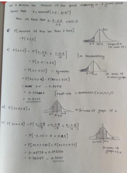 iv) To determine the probability that a person picked at random exercises between 2 and 4 hours per week numerically