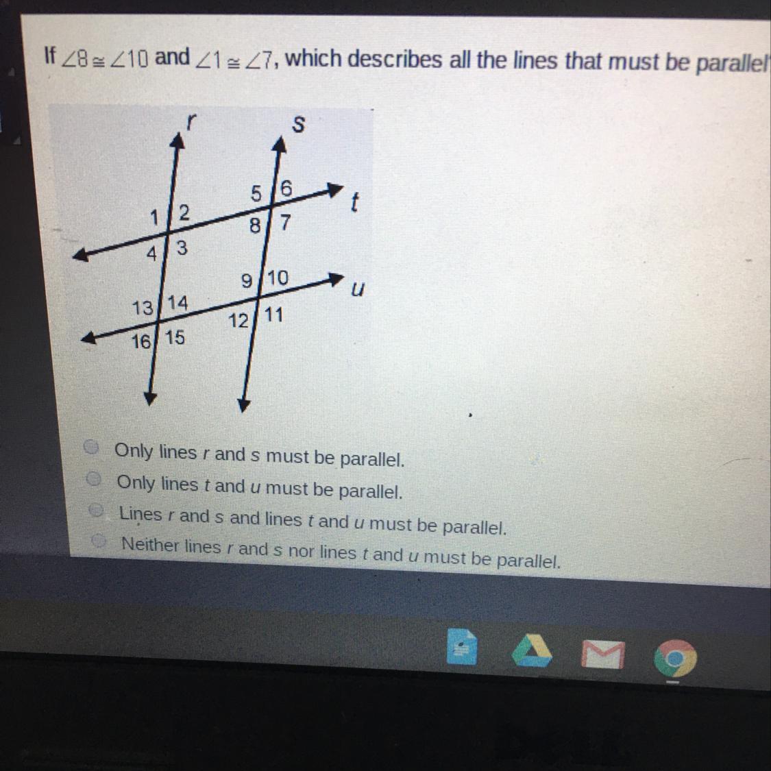 if line t and u are parallel (note we have assumed this to give example of parallel lines)