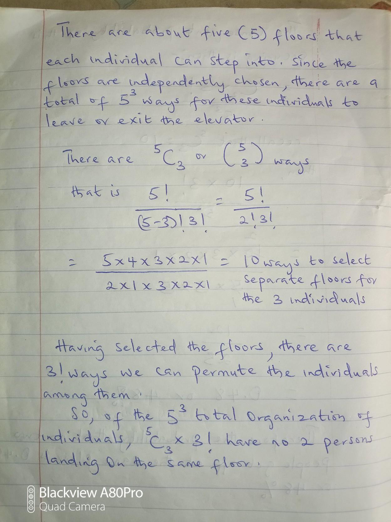 So the probability of all people choosing different floors is 60/125 = 0.48 = 48%