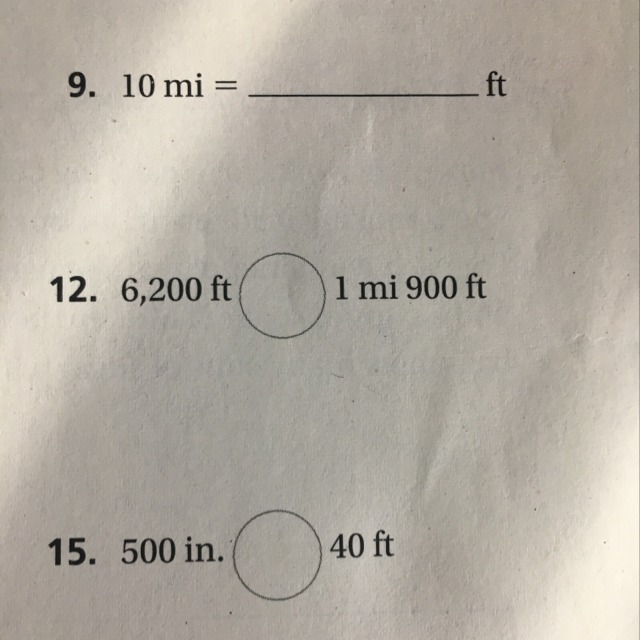 15. Multiply 40 by 12 and you get 480ft so therefore the sign is also greater than.