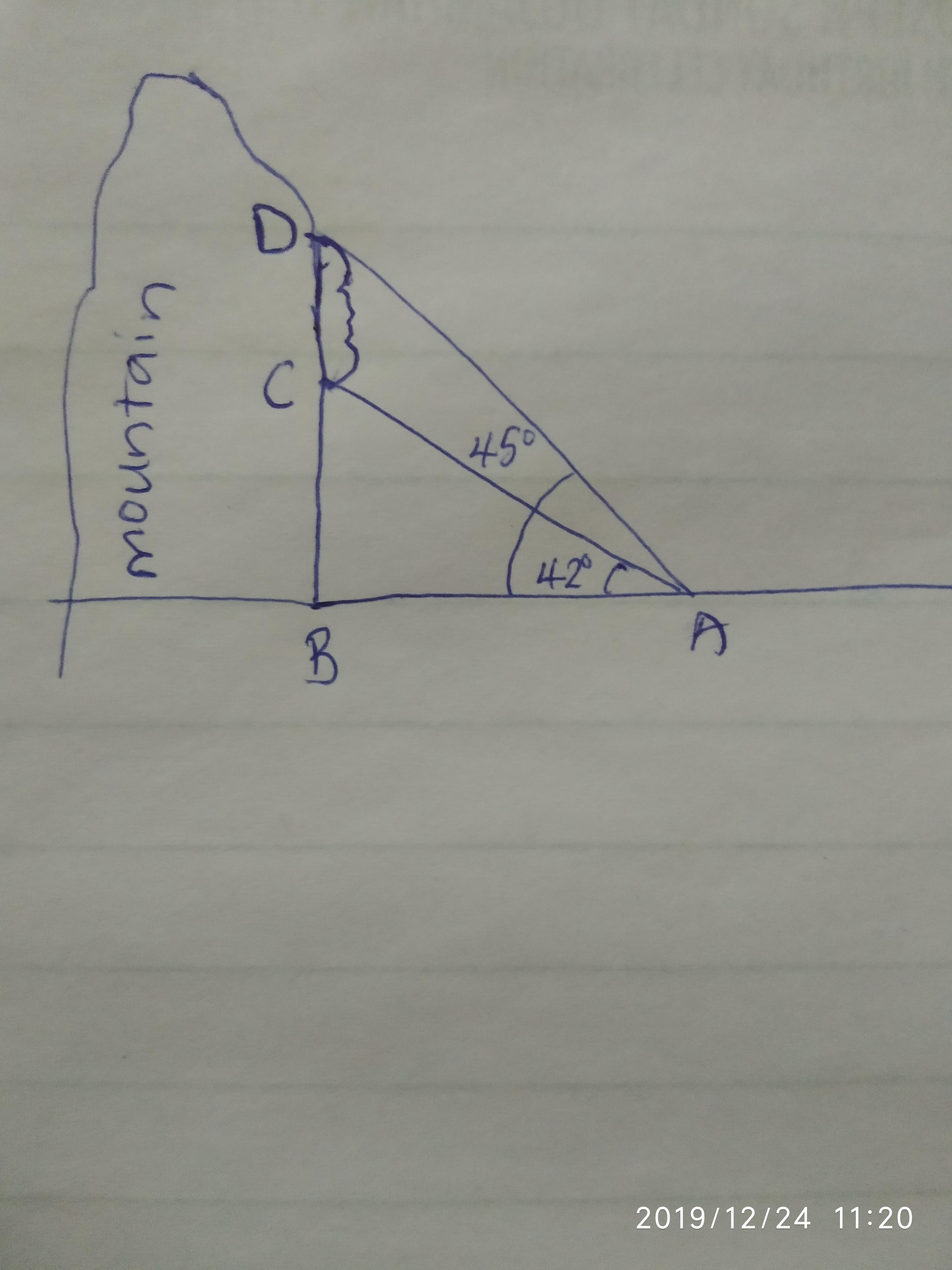 - we can also see that the point of sightings, the base of the mountain and the top of the face form another right angle triangle (triangle ABD)