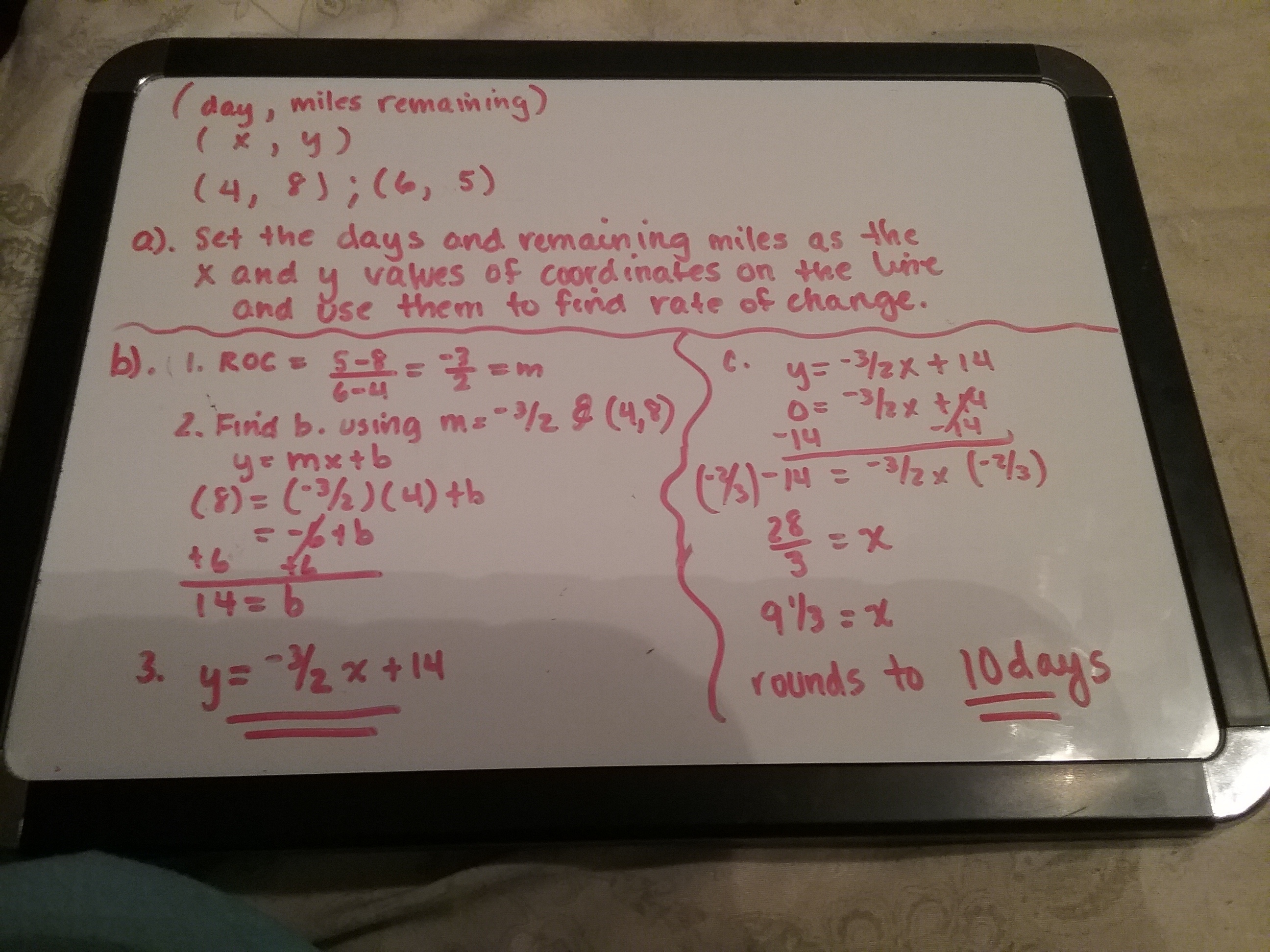 The slope is 2 due to her expecting to write 2 pages an hour.