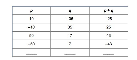 3. For this item, we are just tasked to follow what Malcolm's bandmate started doing. So, we would just need to think of two numbers that would result to -350 when multiplied. To start off, let's think of something we can divide 350 by, let's say 70. Now, if we divide -350 by 70 the result would be -5 therefore that would be our two numbers (p and q). p + q would therefore just be 65.