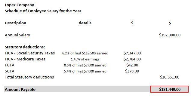 Total deductible arrived at is $10,551 and the salary payable to the employee is $181,449.
