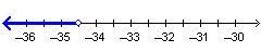e 34.5. Everything to the left of the circle is shaded. Negative 34.5 greater-than x Negative 34.5 less-than x Negative 35.5 greater-than x Negative 35.5 less-than x