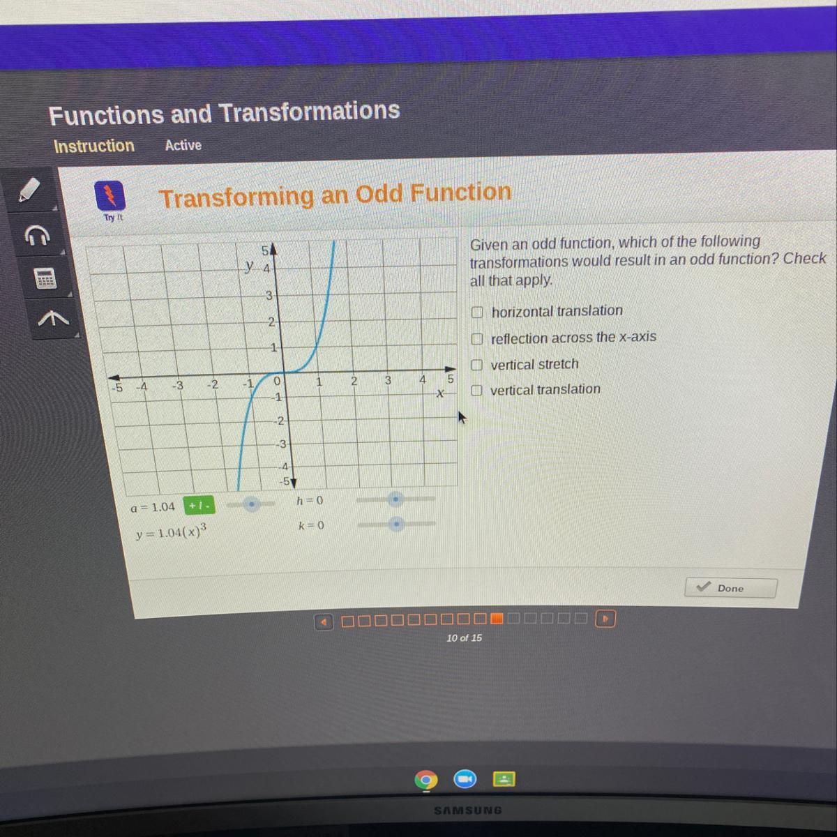 Answer: Reflection across the x-axis and Vertical stretch are the ones that return an odd function.
