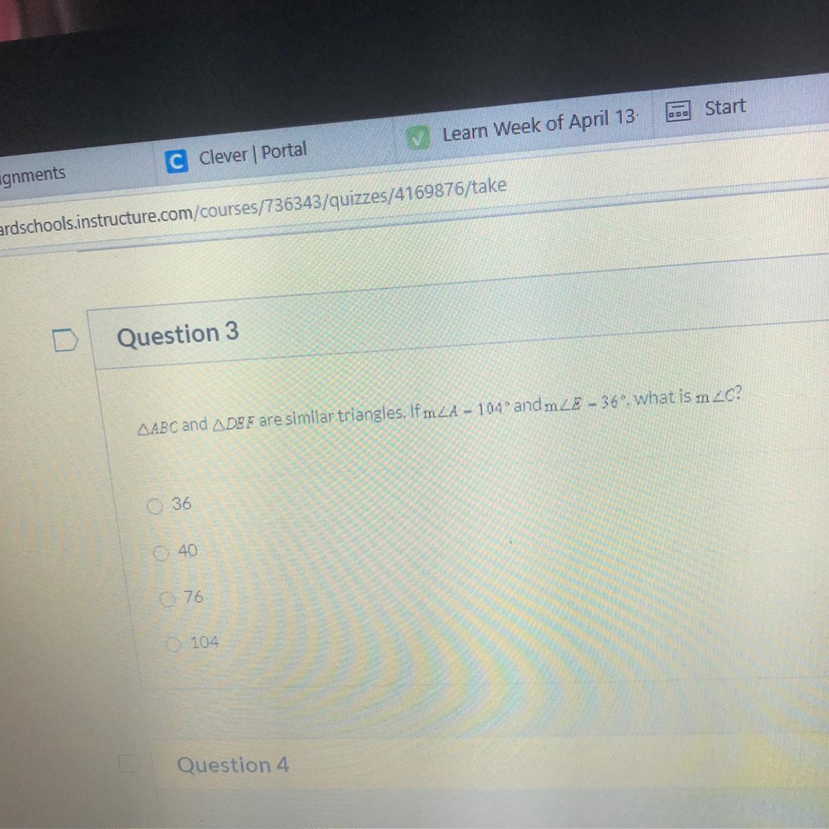 It is also given that the measure of X is three times the measure of W.