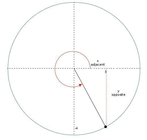 The point (3, -4) is on the terminal side of an angle 0. What is cos 0? A. -3/5, B. 3/5, C. -3/4, D. 3/4, E. 3