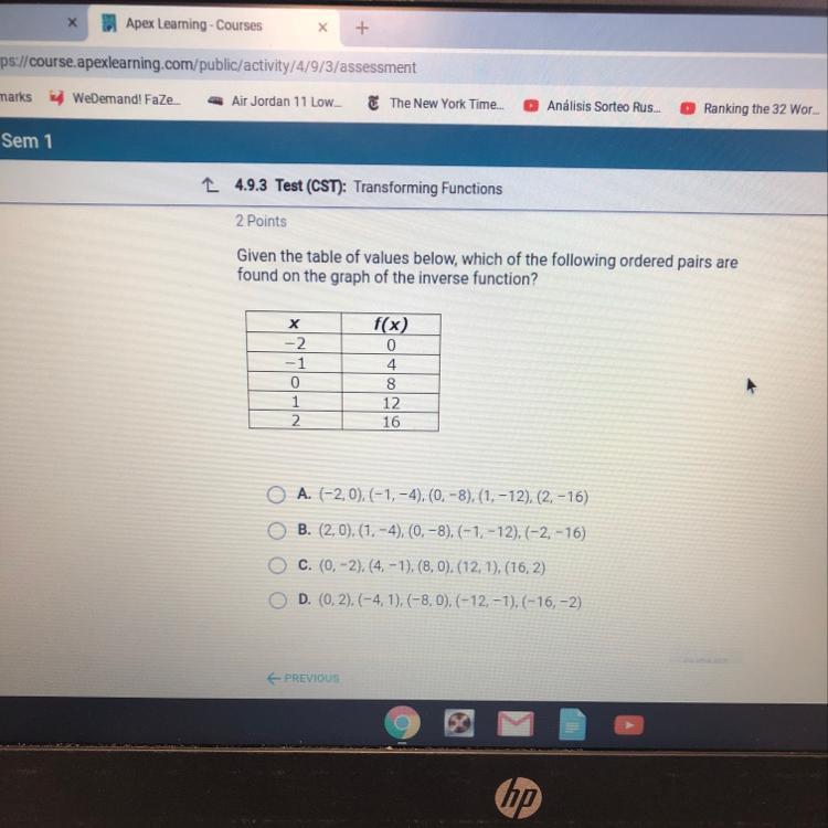 then (0,-2) will be an ordered pair in the inverse function of f(x).