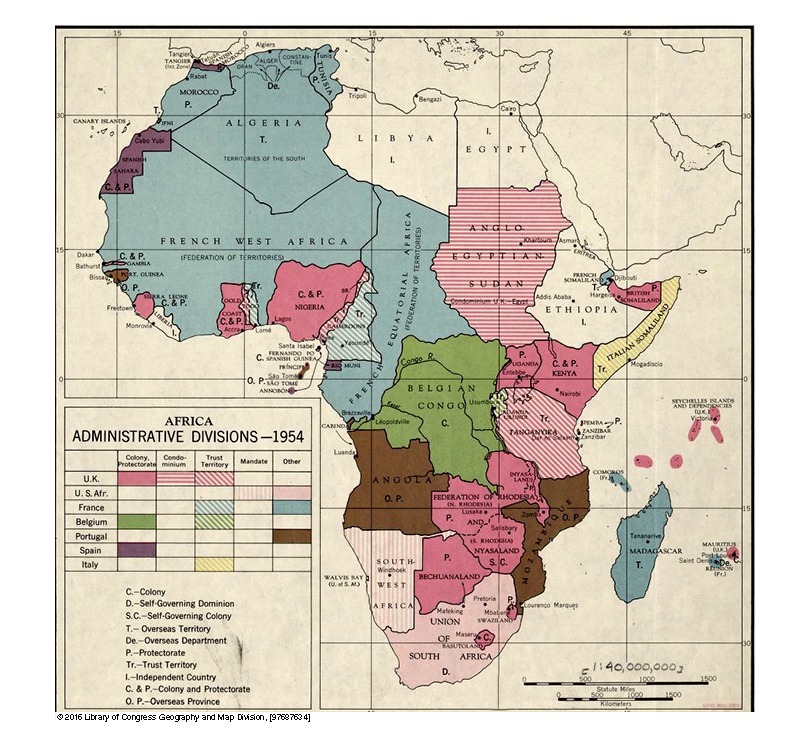 The analysis of both maps allows us to appreciate the results of the decolonization process in Africa. From 1954 to 1962, African independence processes were triumphing and changing the continent's political geography.