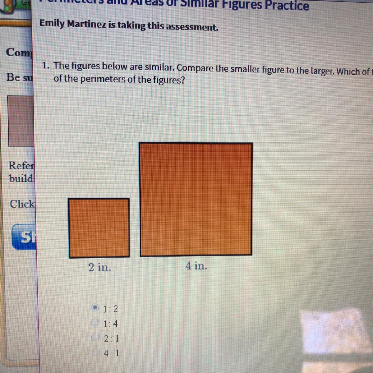 As you can see in the figures shown in the image attached, the lenght of a side of the smaller figure is 2 inches and the the lenght of a side of the larger figure is 4 inches.
