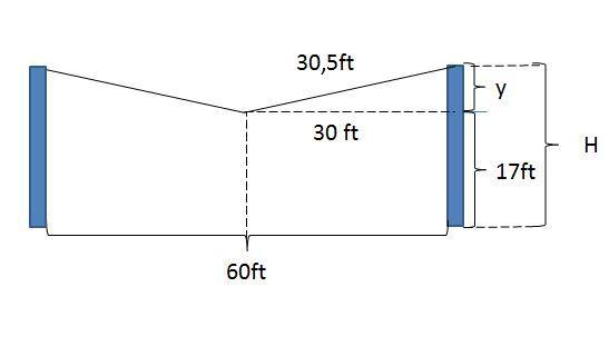 then H=17ft+5.5ft=22.5ft