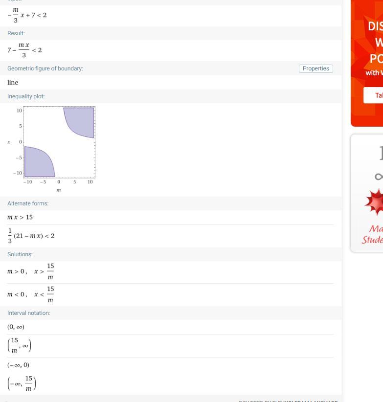 Solve and graph the ine<br> m/-3 x +7&lt;2