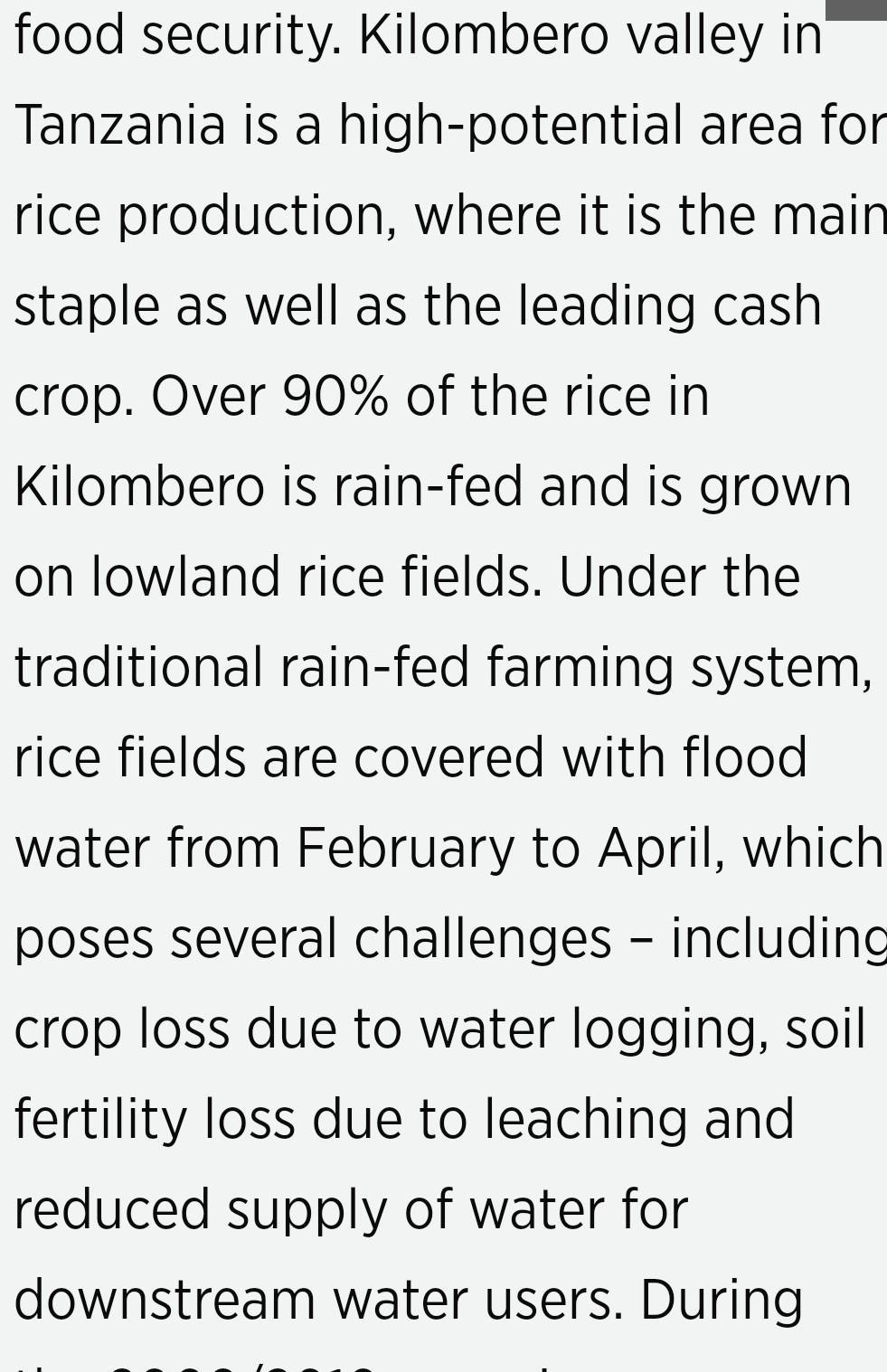 Name the major cashcrop grown in kilombero irrigation scheme in Tanzania? Rice