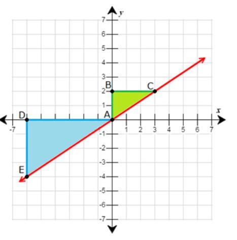 These two triangles are not congruent because for two shapes to be congruent to each other, both needs to have same shape and size and clearly, we can see in this figure that both triangles although are the same shape, are different sizes so therefore these two triangles are not congruent. For example, the height of triangle ADE is 4 whereas the height of triangle CBA is 2.