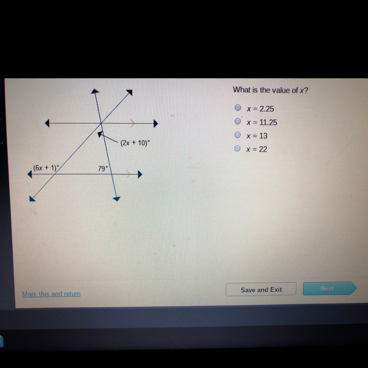 6x+1=2x+10+79 by the exterior angle thm