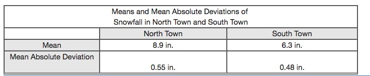 Mean absolute deviation of north town = 0.55 inches.