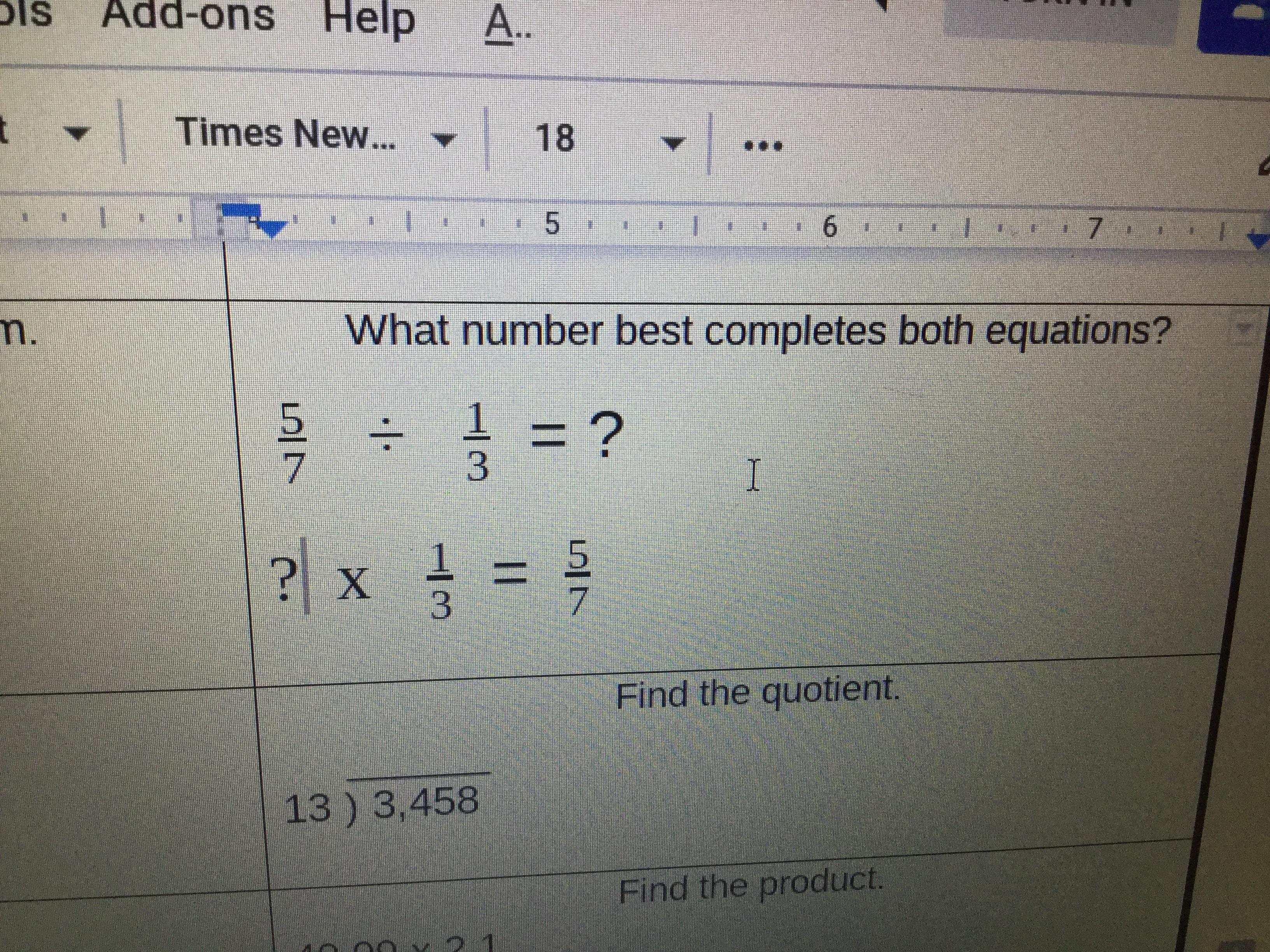 5/7 divided by 1/3 ---> 5/7 divided by 3/1
