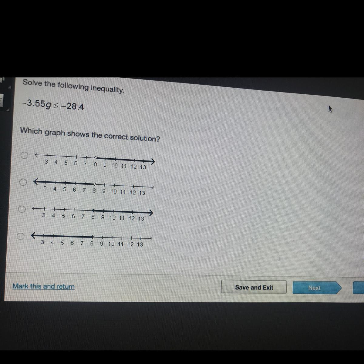 Solve the following inequality-3.55g<-28.4