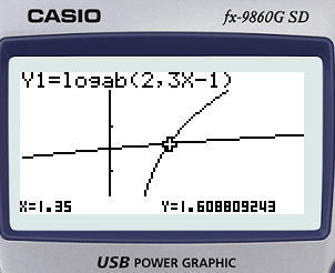 The intersection point of these graph is (1.353, 1.613)