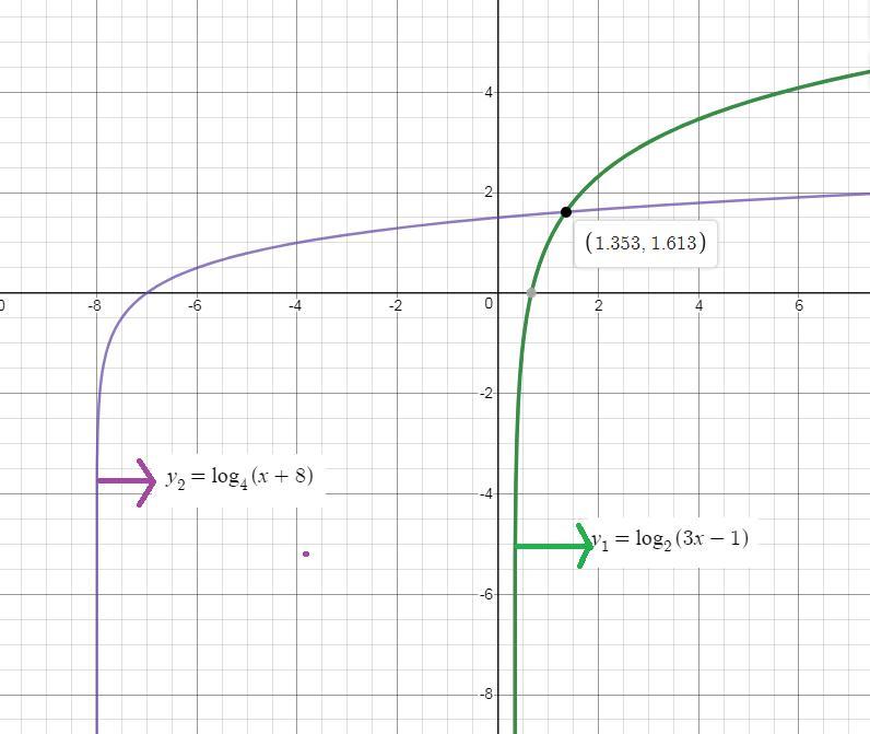 Therefore, The solution to the given equation is at point (1.353, 1.613).
