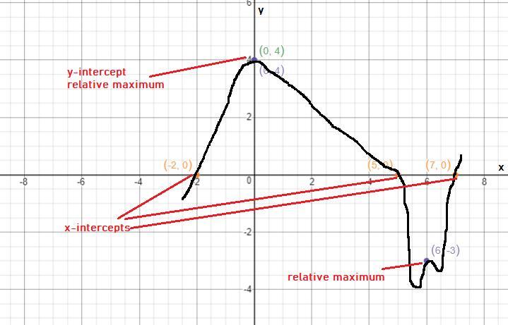 - x-intercepts: -2, 5, 7