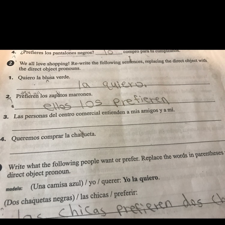 You did the first two write and i would even say you dont need ellos bc it doesnt specify. do you need answers to the last two?? i have them i just wasnt sure if you wanted them or not