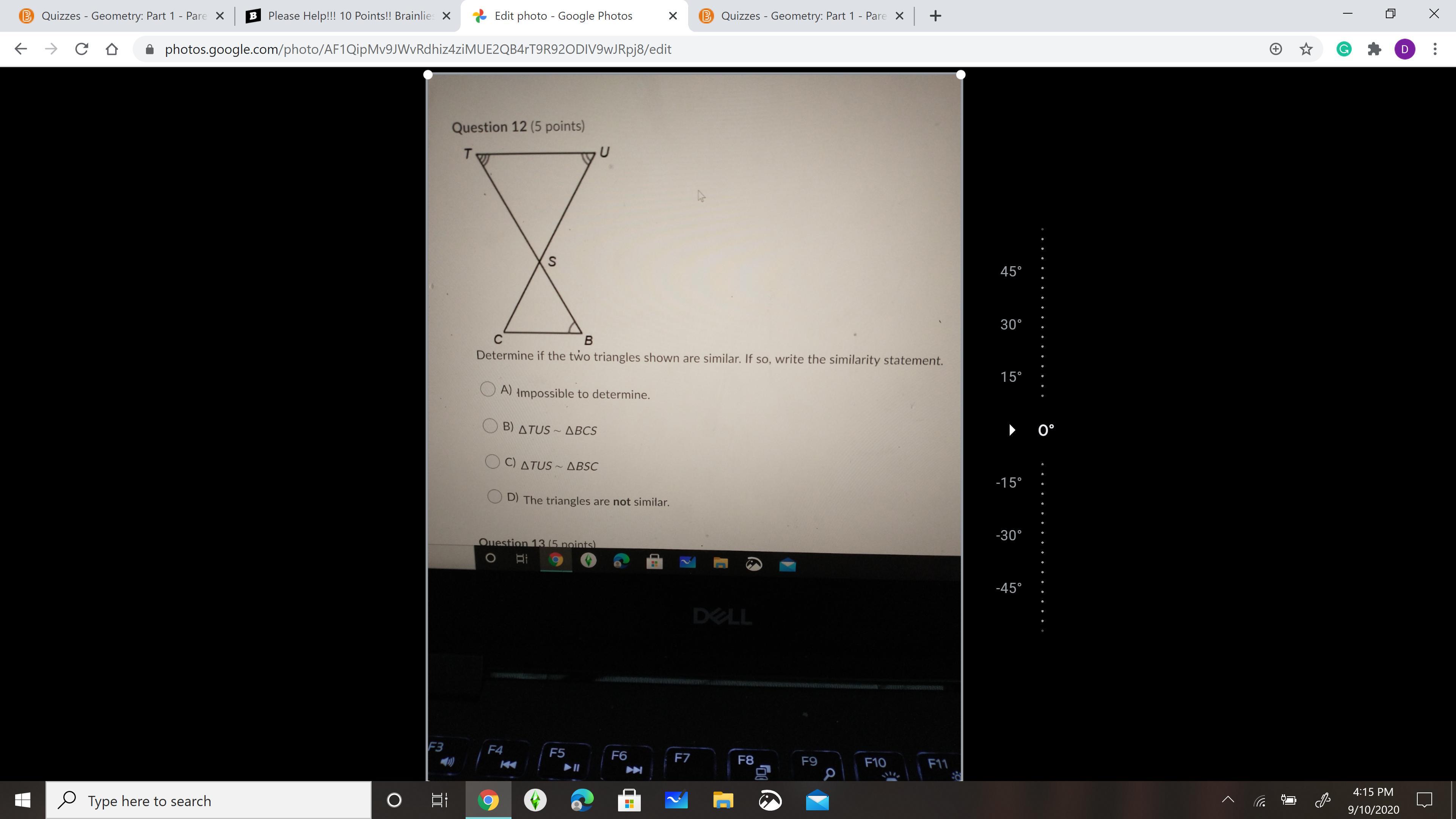 Answer is B the 2nd one hope it’s right i think i did this