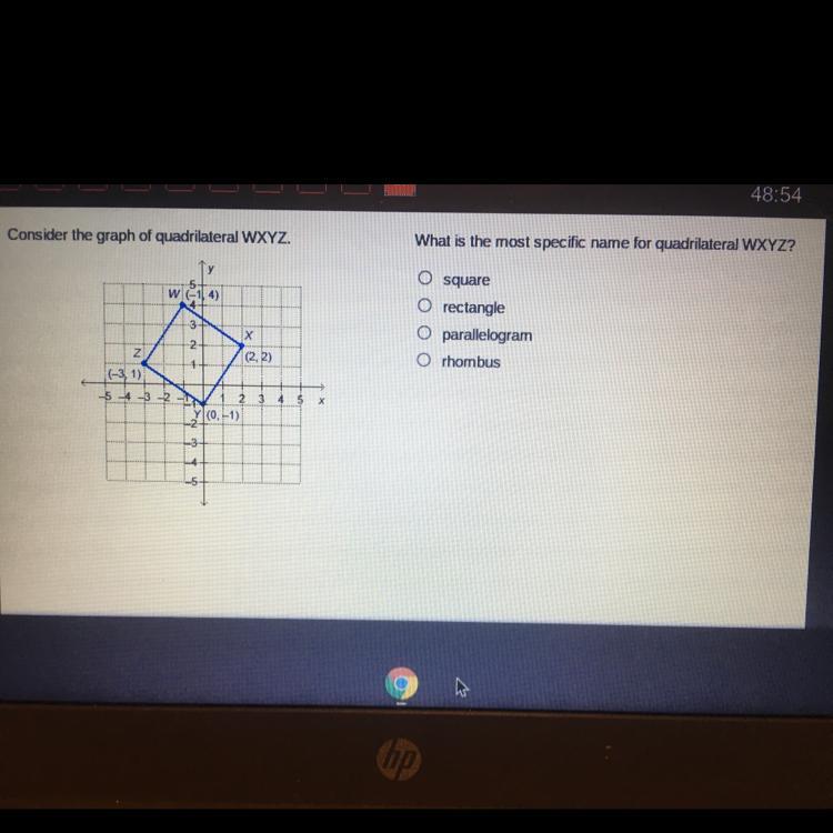 W(-1, 4), X(2, 2), Y(0, -1), Z(-3, 1)