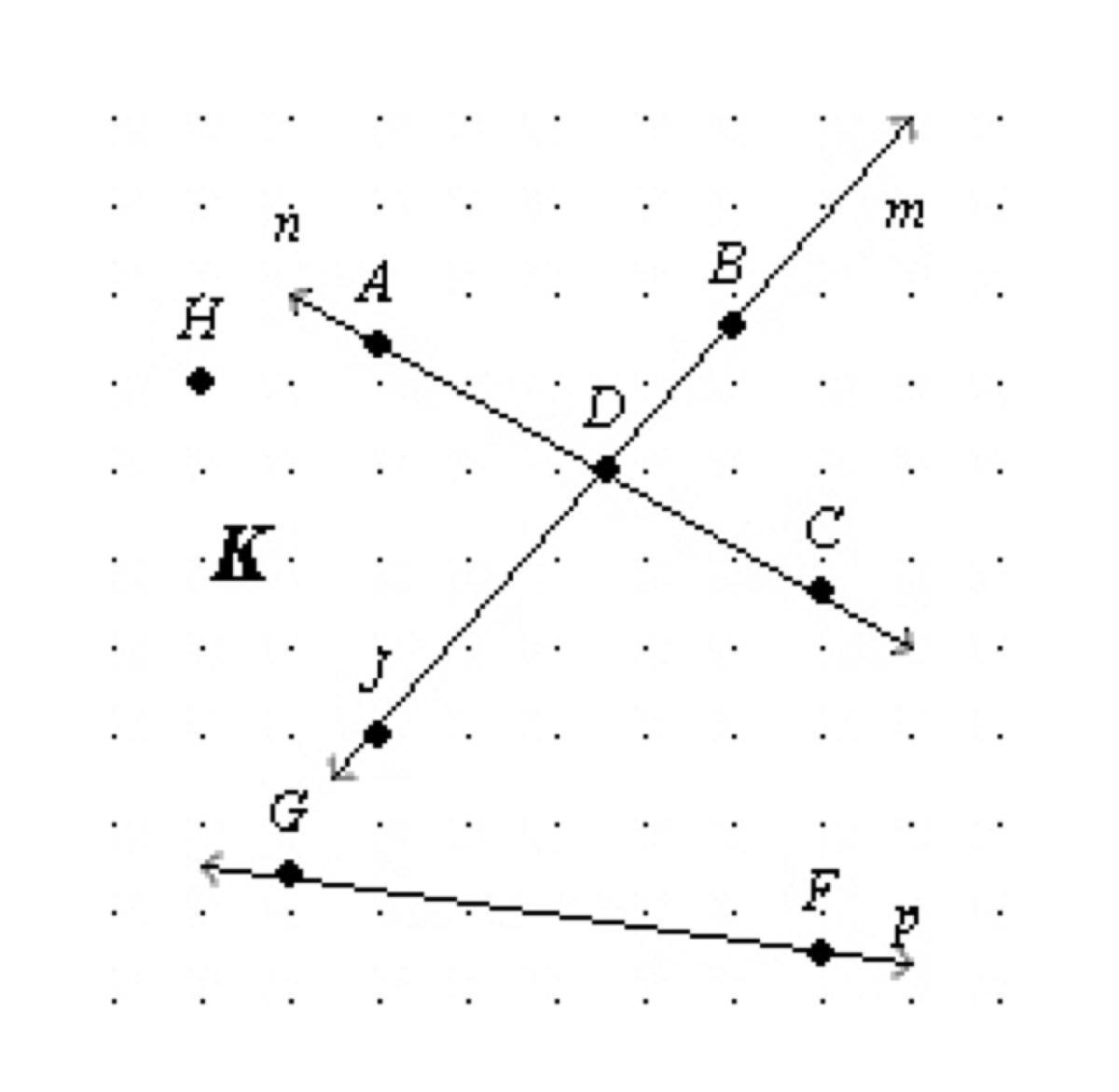 All of the points A, B, C, D, G, F, J belong to at least one between m, n or p.
