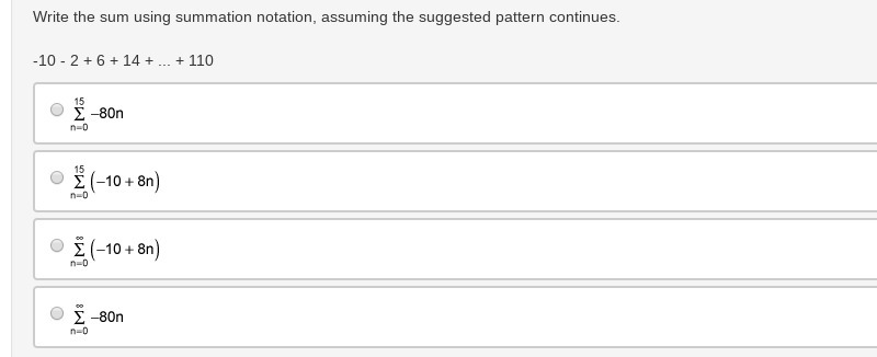The last term is 110, which gives the equation Tn=110=-10+8(n)