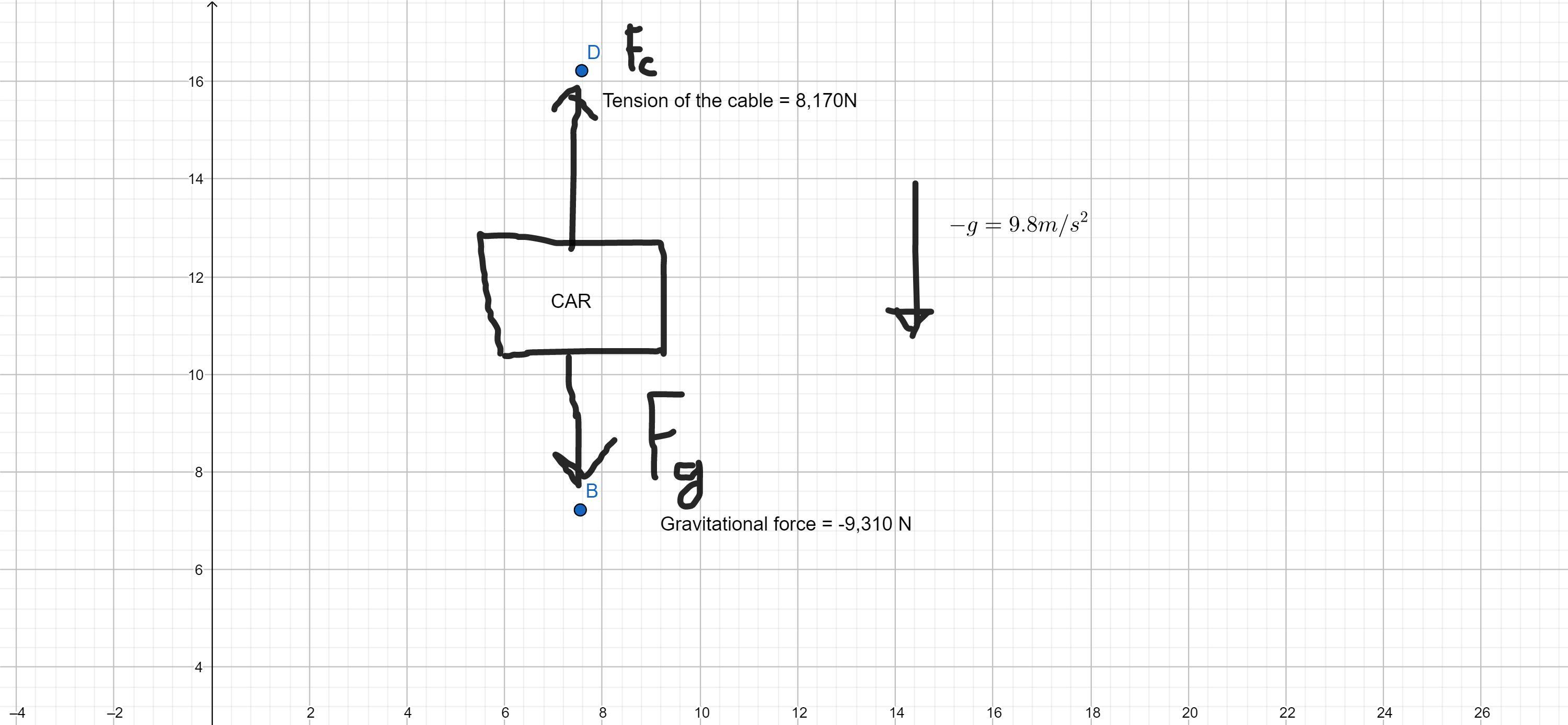 Where Ac is the acceleration caused by the cable, that is opposite to the acceleration of the car: