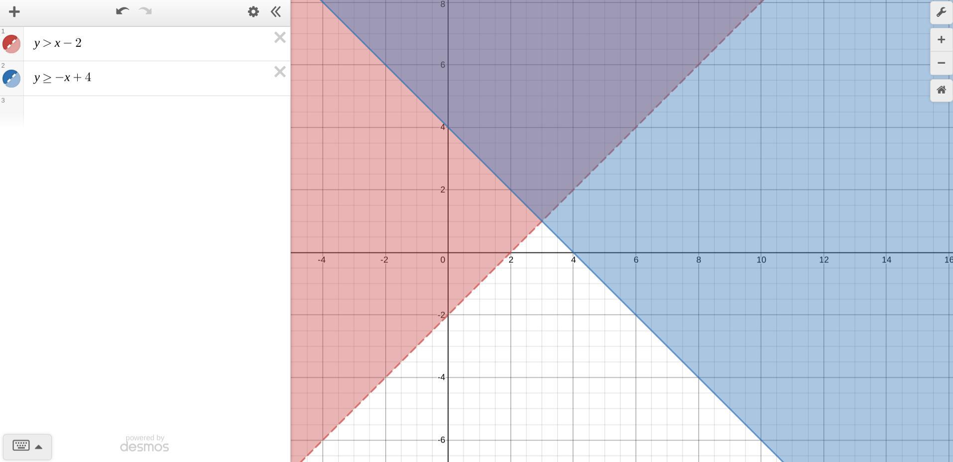solve for y for the second one by subtracting 2 by boths sides --> y > x -2