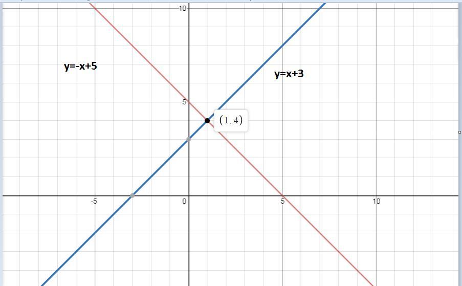 Now from the graph of these two lines we see that the system of lines intersect at just one point.