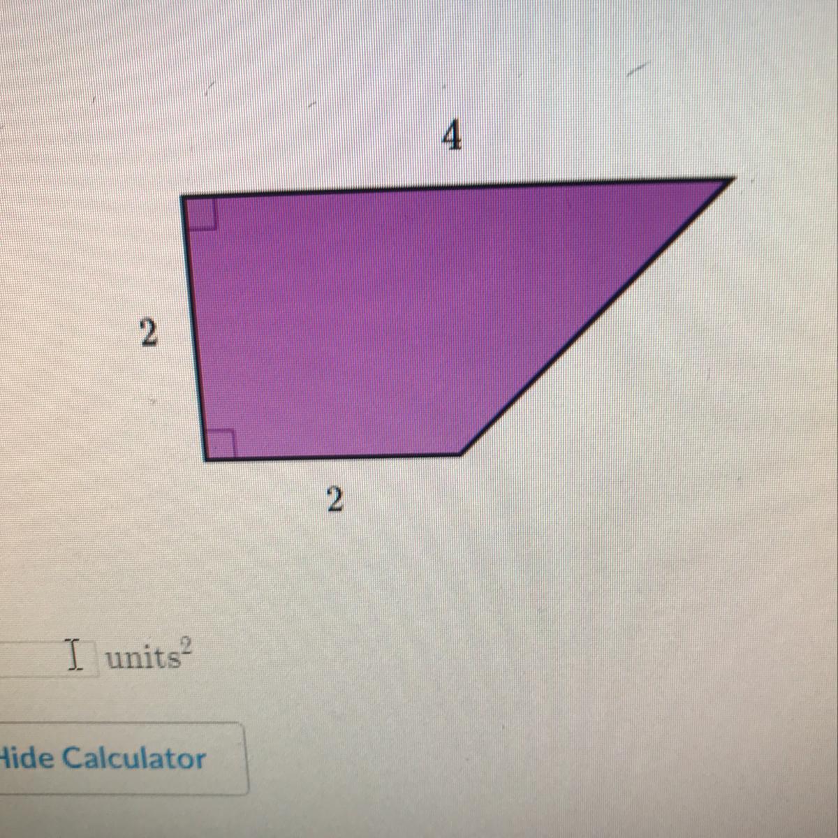 Pretend there is two different squares. The first square would be 2 x 2, since the area formula is A = l (length) x w (width). That would be four.