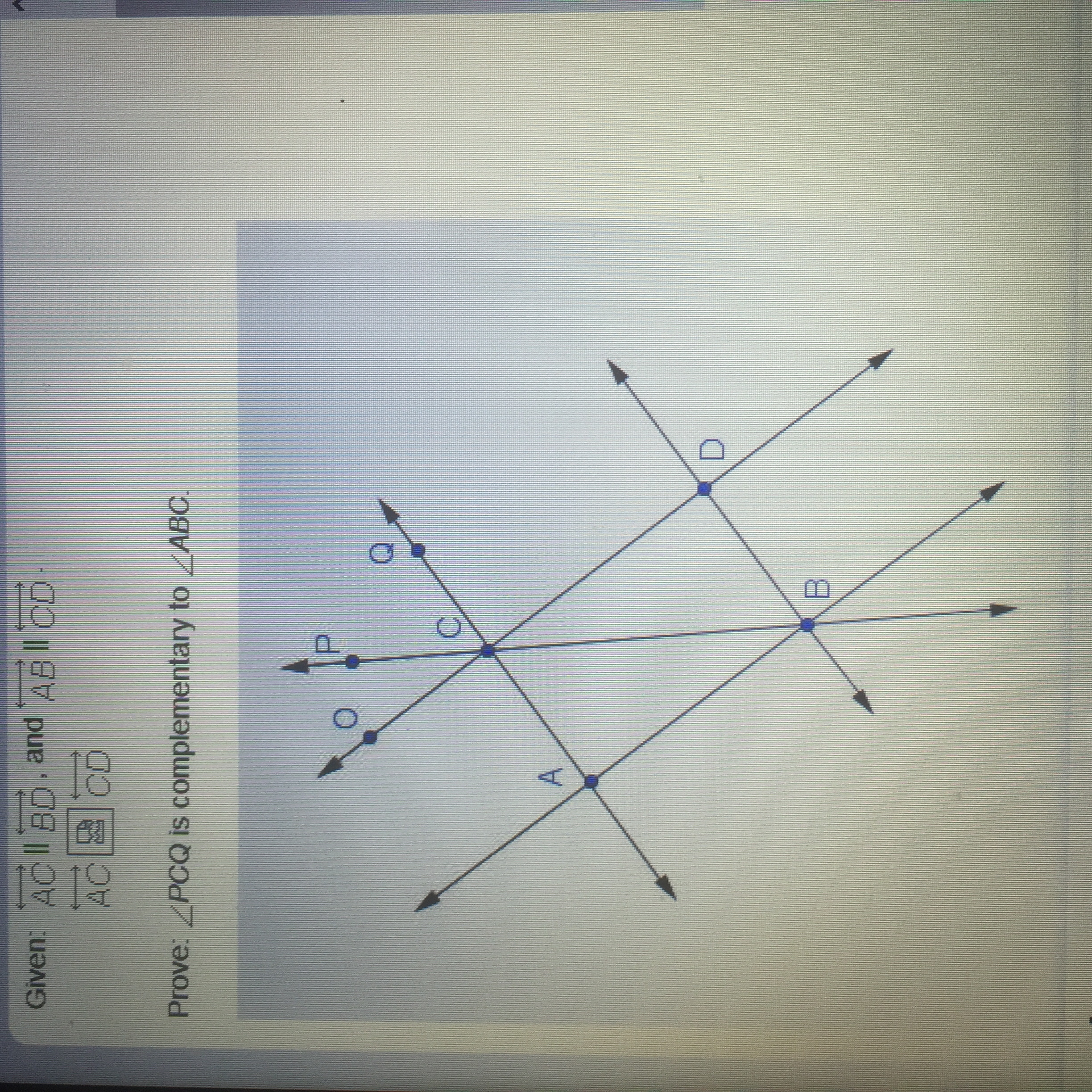 Angle PCQ is complementary to angle ABC