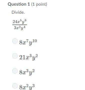 24x^5y^6/3x^2y^4 = 8x^3y^2