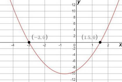 The diagram below shows a graph of your parabola with roots at (-3, 0) and (1.5, 0).