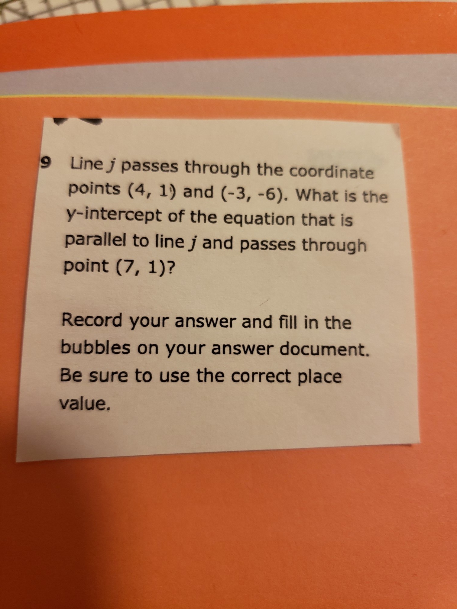 The question is asking you to find the equation of the line that passes through the point (7, 1) and is parallel to line j, which means that the line has the same slope as line j.