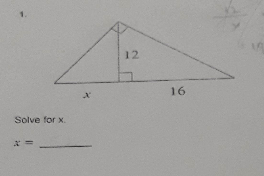 Step-by-step explanation: If you observe very closely, there are two triangles placed beside each other, and the one on the left has the right angle on the right side. Notice also that the perpendicular line that separates side 16 from side X, cuts the right angle of the bigger triangle into two, (that is, 90/2 = 45). That means the triangle has three angles, which are 90, 45 and 45 {sum of angles in a triangle equals 180}.