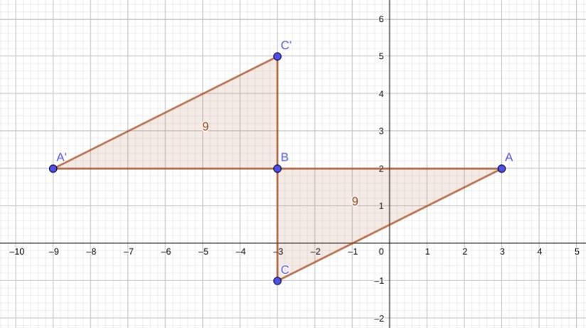 Triangle ABC has vertices at A(2, 8), B(6, 2) and C(-3, 2).
